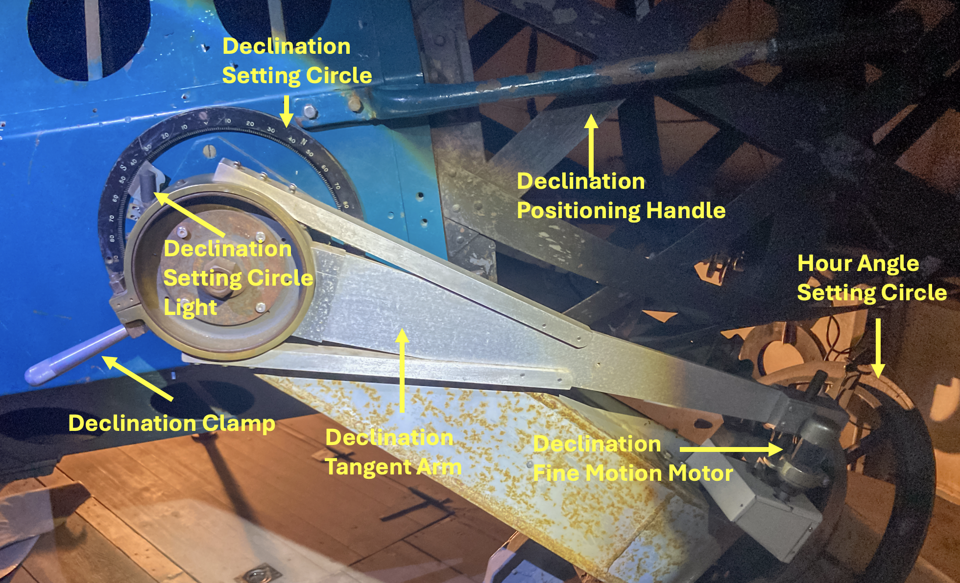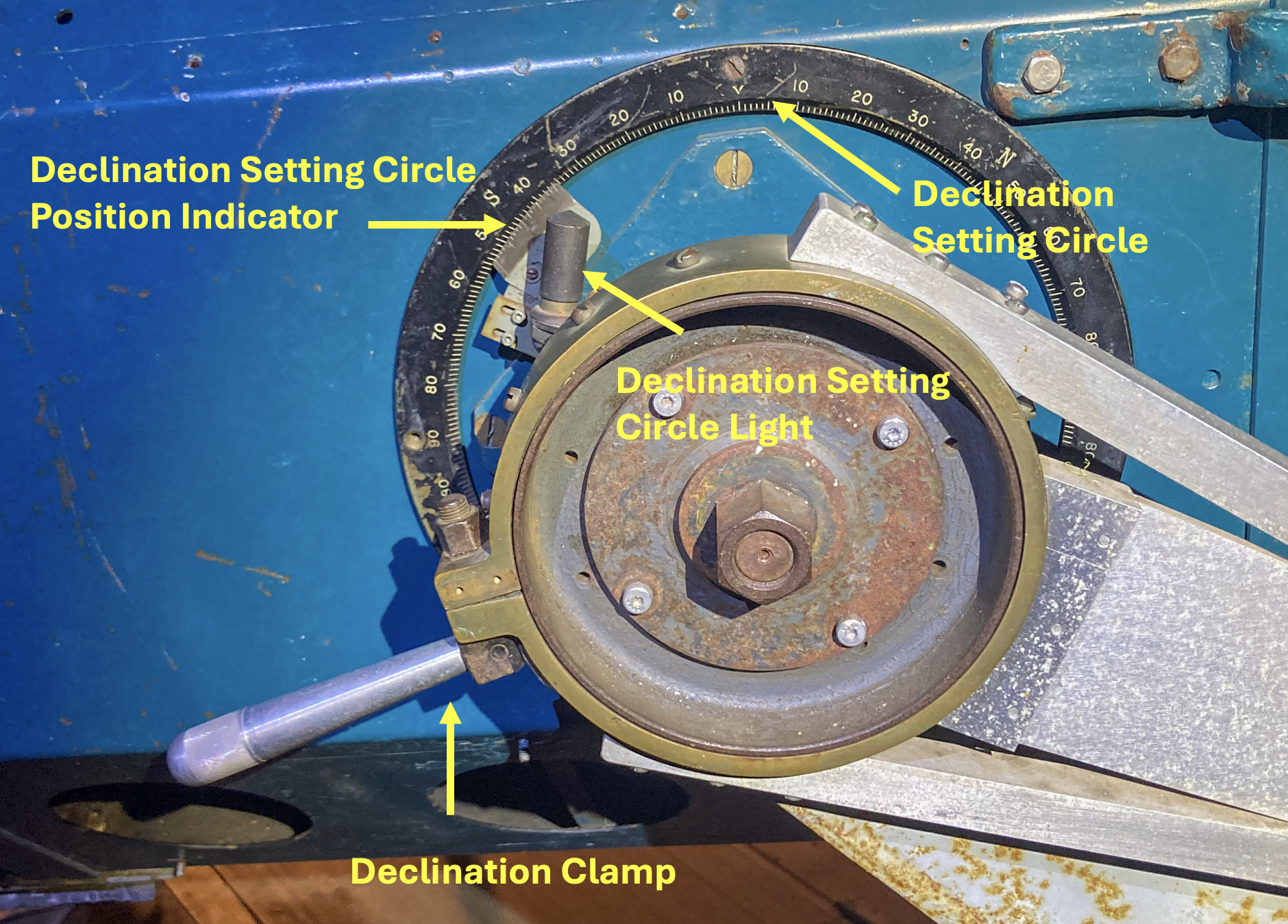 The Dec Setting Circle Light is a small red bulb above the Dec