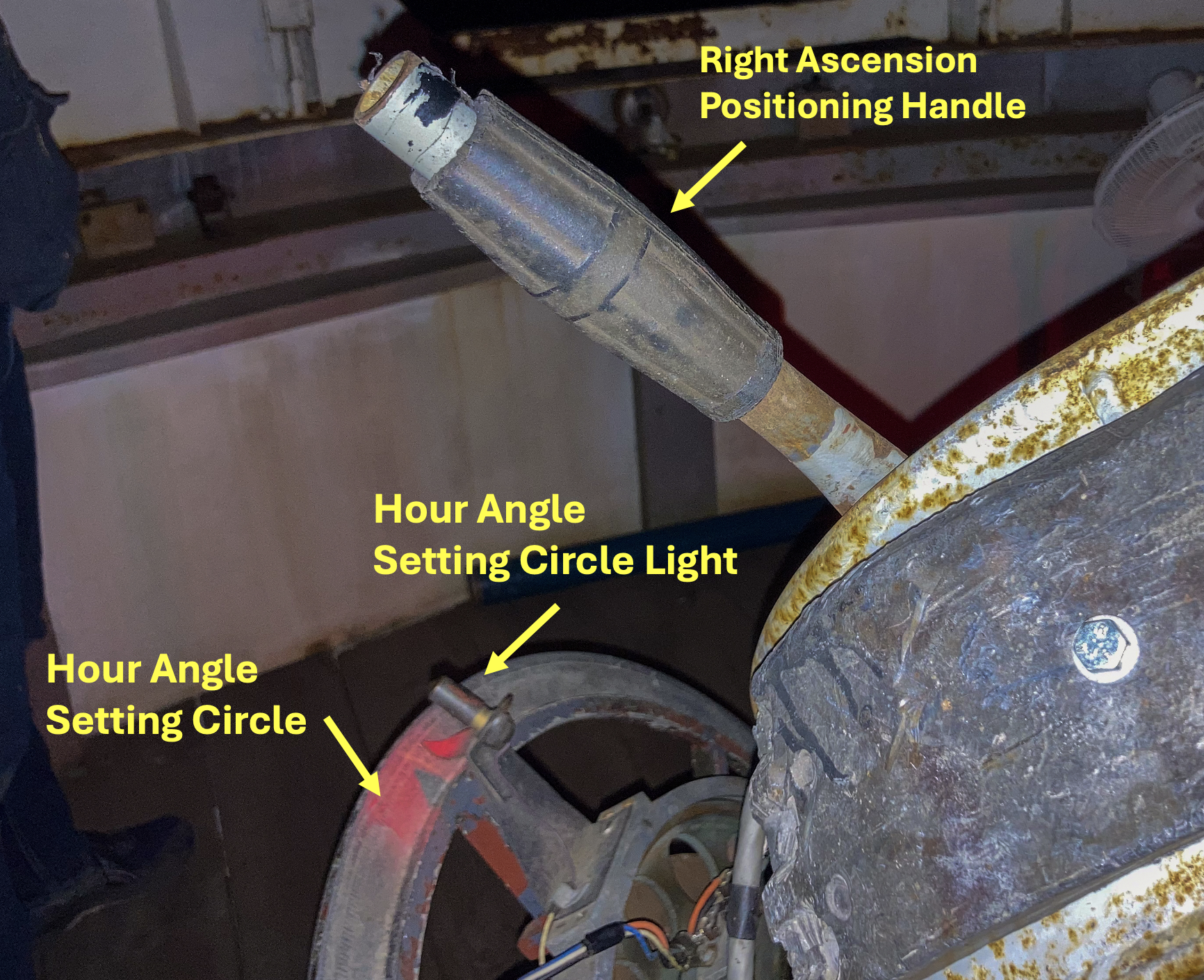 The HA Setting Circle Light is a small red bulb above the HA Position